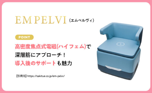 コストパフォーマンスで他社を圧倒する骨盤底筋トレーニング機器。最大出力2~3テスラのマシンが多い中、FEMICの出力は業界最高峰の最大7.0テスラであり、効果の高さをしっかりと体感することができます。男女別モードが搭載されていて、年齢や性別を問わず幅広いニーズに対応できるのも嬉しいポイント。安心の1年保証もついた高品質なマシンです。