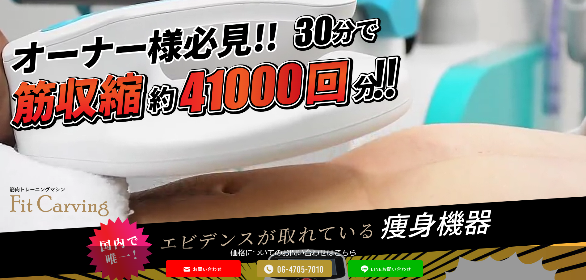エトワール株式会社が取り扱う「Fit Carving」は、HI-EMT技術による高密度の磁気パルスで、深層筋肉をダイレクトに動かす高性能ボディメイクマシンです。30分で約4万回の筋収縮を引き起こし、筋力強化による基礎代謝の改善から、脂肪細胞への直接的なアプローチまでを強力にサポートします。